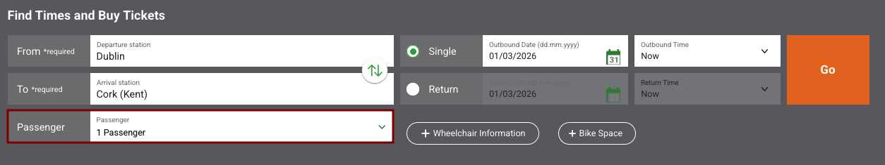- Dublin – Cork Premier Class services: 10:00 (Monday – Saturday), 12:00 (Monday – Friday) and 14:00 (Monday – Friday)